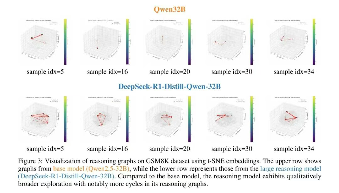 这种循环性暗示着模型在推理时并非一蹴而就,而是会像人类一样,频繁地回过头去重新审视之前的推理步骤,发现问题所在并进行修正。这种类似于人类 “啊哈时刻” 的自我修正能力,使得模型能够不断优化自己的推理路径,从而提高推理的准确性。试想,当模型陷入一个复杂问题的思考时,这些循环就像是它不断尝试、反思、再尝试的过程,最终在某个瞬间豁然开朗,找到正确的解答方向。